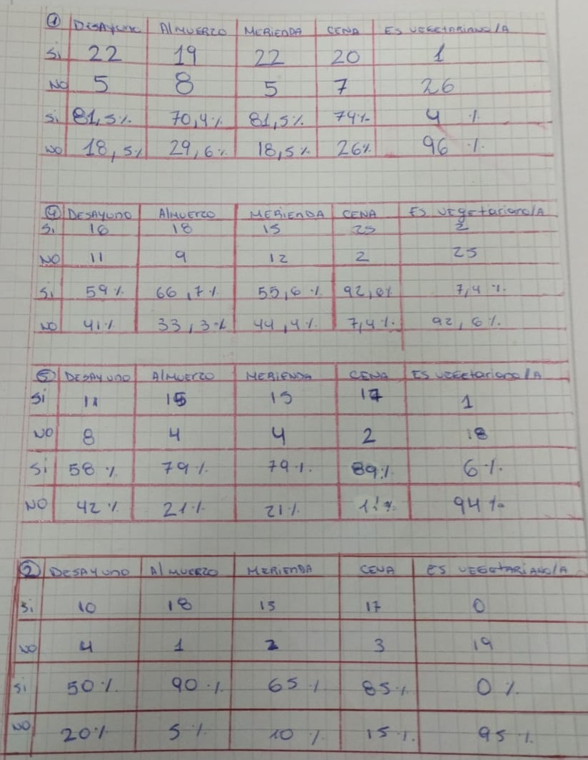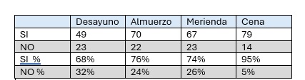 COMO RESULTADO TENEMOS QUE SOLO EL 14 %, cumplen las 4 comidas