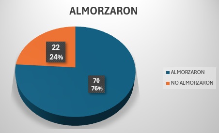 El ayuno intermitente una dieta muy usada actualmente. Esta presente según el resultado de esta encuesta. Dado que un 32% de los alumnos del turno tarde no desayunan. En otras palabras muchos de los encuestados realizan ayuno intermitente sin saberlo. Un ayuno intermitente implícito