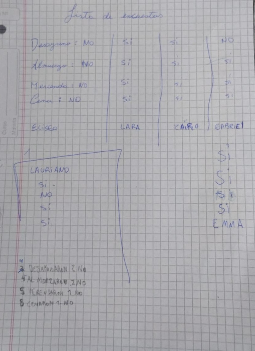 Si tomamos las planillas 1 2 4 y 5 de la encuesta realizada el día 3 de julio en la Escuela 22